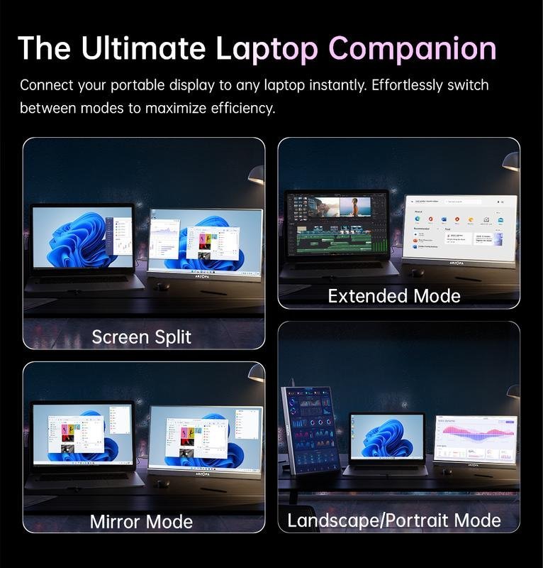 This portable monitor is designed to be thin, slim &light. It is only 0.35 inches thick and 1.57 pound in weight. Expand your productivity on the go.