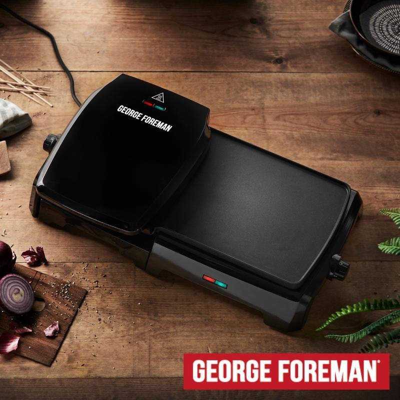 This George Foreman large electric grill & griddle is a kitchen game-changer with dual cooking plates for simultaneous meal prep.