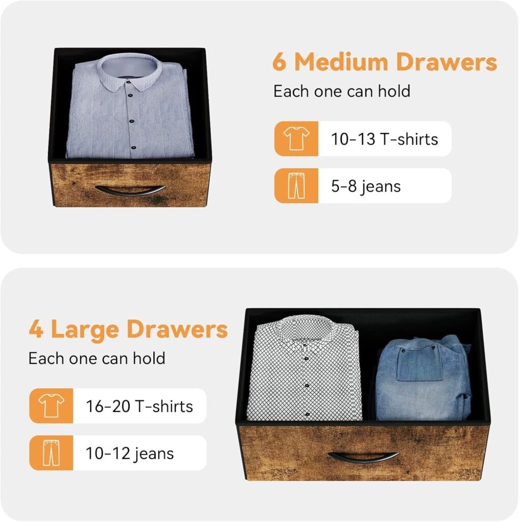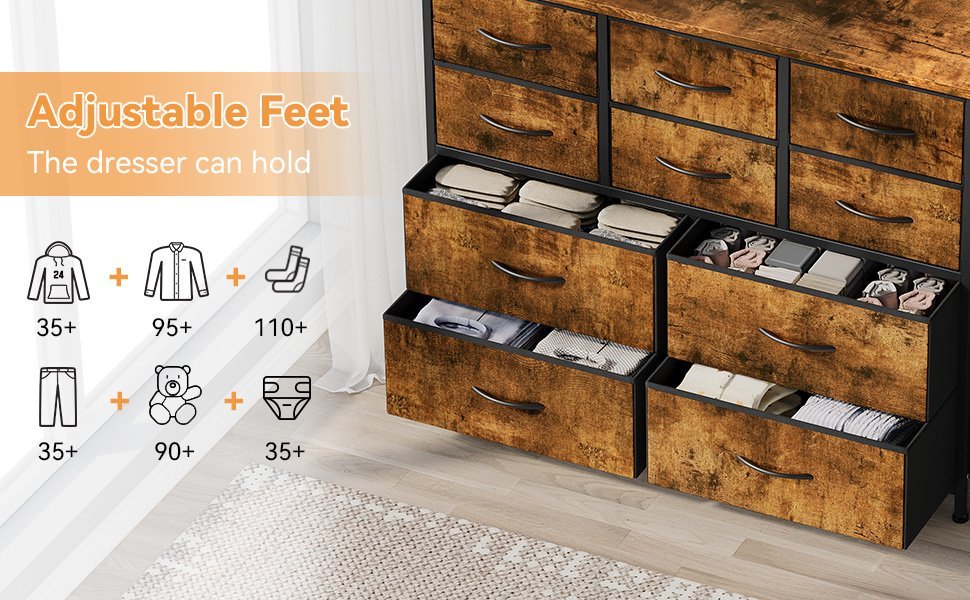 Extra drawer space for small items like socks and underwear, adds more storage versatility.