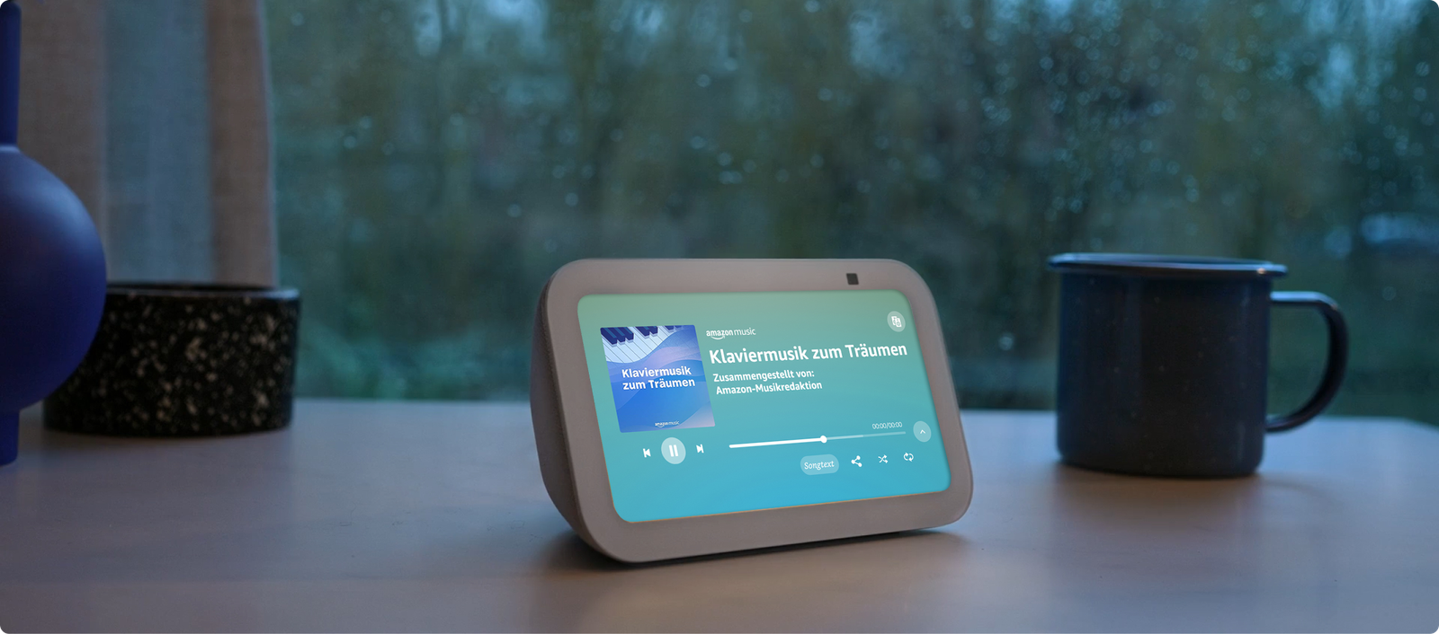 | Systemanforderungen | Echo Show 5 WLAN-Verbindung | Alexa App kompatibel | Echo Show 5 kann sofort mit deinem WLAN verbunden werden. Die Alexa App ist kompatibel mit Fire OS-, Android- und iOS-Geräten. |