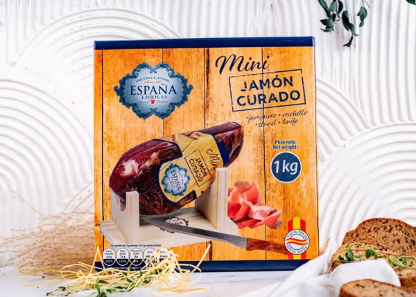 Este Mini Jamón Curado es un producto gourmet español de alta calidad, elaborado mediante un proceso de curado tradicional que le aporta un sabor intenso y una textura jugosa. Se presenta en formato compacto, ideal para degustaciones caseras, regalos o salidas al aire libre.