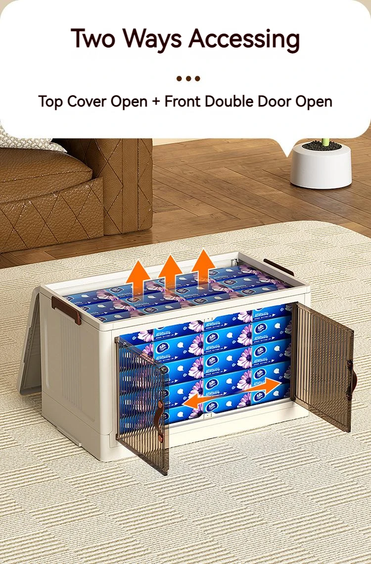 Easy to assemble in 1 minute, no tools needed. The top lid and front doors make accessing items super convenient.