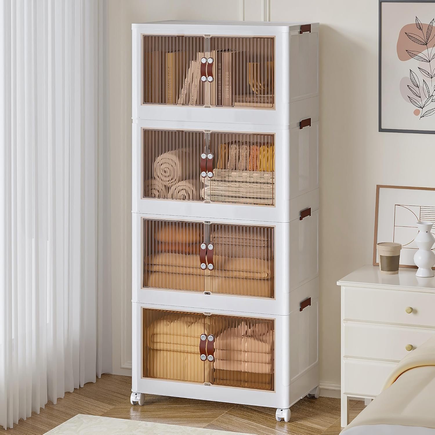 ONAIL Foldable Storage Bins 128QT with Lid, Magnetic Doors & Lockable Wheels, Stackable storage Boxes for Living Room, Office, Kitchen, Dorm